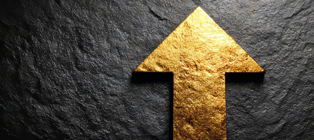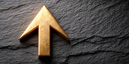Golden Ascent Embossed Texture of Upward Arrow on Dark Backdrop Evoking Prosperity and Growth
