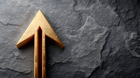 Golden Arrow Rising on Dark Stone Background, Symbolizing Growth, Achievement, and Progress
