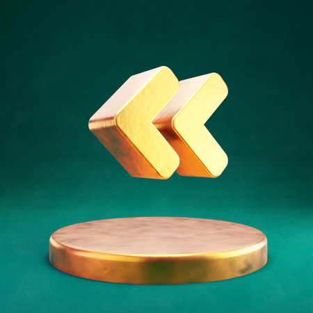 Angle Double Left icon. Fortuna Gold Angle Double Left symbol with Tidewater Green background. Social Media Icon.
