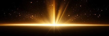 Stunning golden rays of light shine through a dark background, creating an ethereal and magical atmosphere. Perfect for artistic projects and designs.