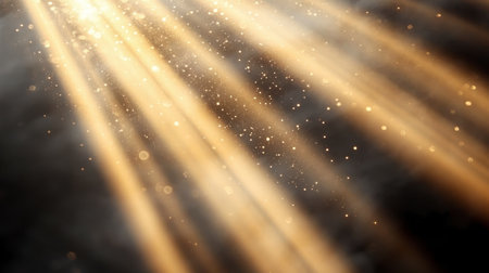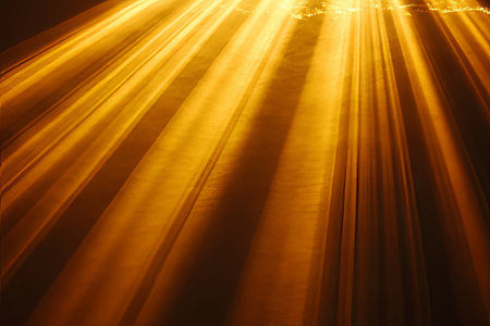 Dazzling Golden Spotlight Beams Illuminating Darkness with Ethereal Light Rays for Dramatic Effect