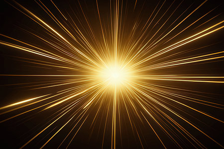 A stunning burst of radiant gold light, creating a dynamic display of rays that evoke warmth and energy, ideal for backgrounds and artistic designs.