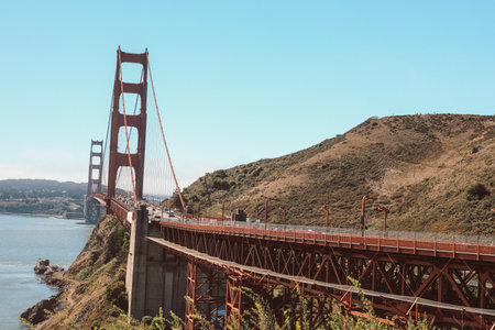 San Francisco, USA - August 2014: Golden Gate Bridge on a sunny summer day. The Golden Gate Bridge is a suspension bridge spanning the Golden Gate, connecting San Francisco Bay and the Pacific Ocean.