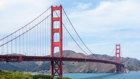 Nature and engineering collide in a picturesque view of the famous Golden Gate bridge, San Francisco.