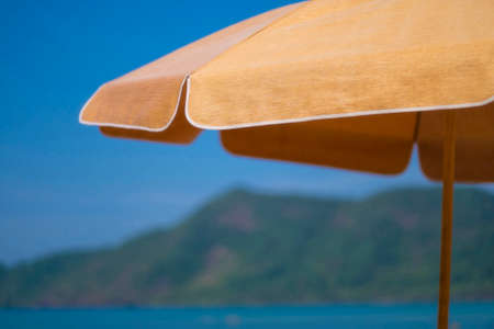 yellow umbrella on clear blue sky .summer holidays concept