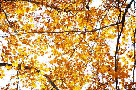 Autumn tree top. Nature in fall season. Autumnal sunny day. Seasonal leaves on tree. Natural autumn leaves. Autumn beauty of nature. Fall season nature. Fall leaves of yellow tree