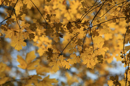Beautiful yellow maple leaves, natural autumn scene.
