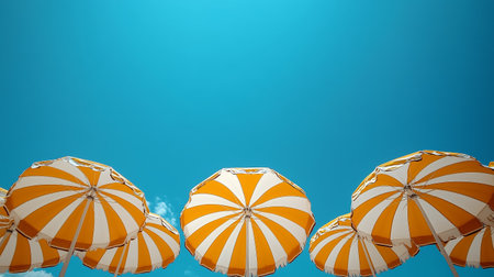 Yellow umbrellas on blue sky background