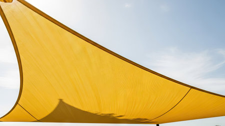 yellow sunshade, with blue sky
