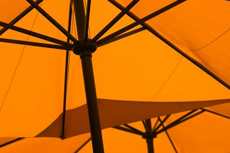 Orange sun umbrella against blue sky