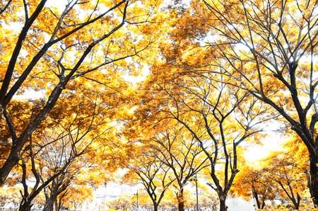 Autumn season with multicolored yellow yellow foliage