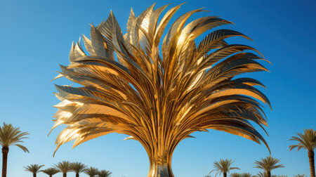 Dry yellow palm leaves in a sunlight. Summer background. Selective focus.