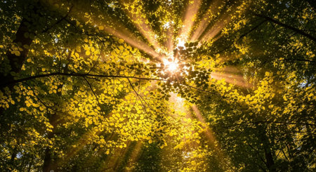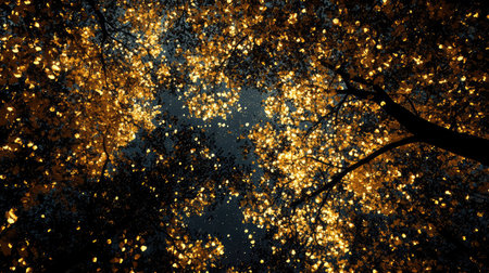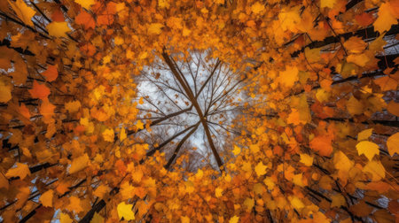 A view of the sky through a tree canopy in autumn, AI