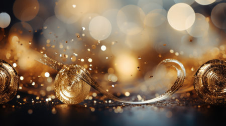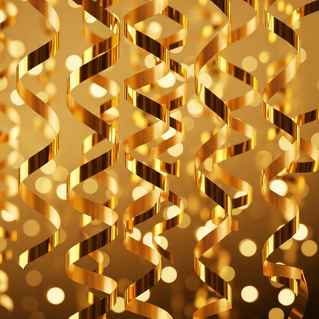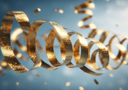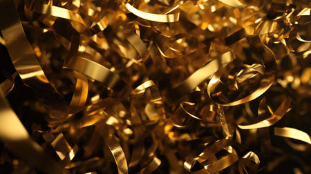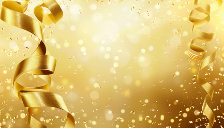 This stunning image captures golden ribbons intertwined with sparkling confetti, creating a festive atmosphere perfect for celebrations, parties, and special events.