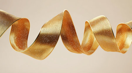 This stunning image features a golden ribbon twisting beautifully, set against a dark background. The rich texture and radiant shine create an atmosphere of elegance and luxury.
