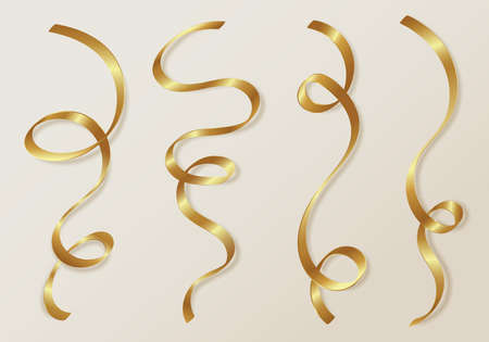 Set of golden curly ribbon serpentine confetti isolated on white background. You can use for decoration party, birthday, carnival, christmas, new year greeting card, etc. Vector illustration
