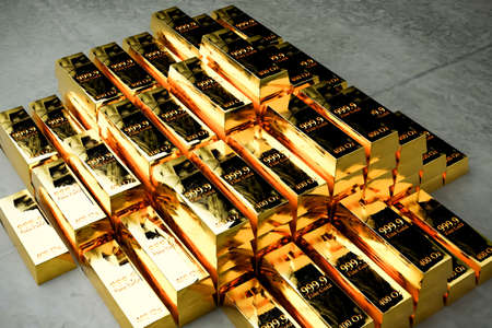 Gold bars on a dark background. 3d rendering. High resolution photo.