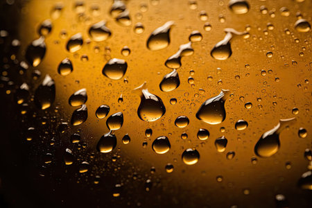 Beer Glass Condensation Texture Background, Cold Wine Bottle Mockup, Golden Bubbles with Copy Space, Condensation Pattern, Abstract Generative Ai Illustration