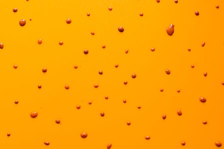 This image features beautiful amber water droplets scattered on a smooth white surface. The glimmering droplets create a stunning visual, adding depth and texture.
