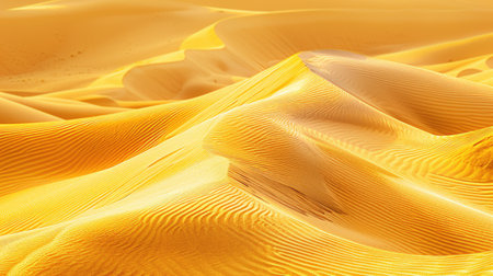 This image showcases golden sand dunes with gentle curves and ripples, creating a tranquil desert landscape bathed in bright sunlight, perfect for nature lovers.