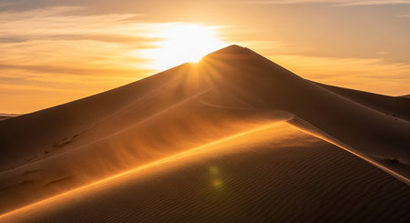 Majestic Sand Dunes in Desert at Sunrise