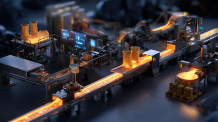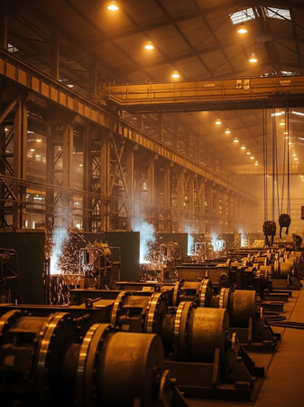 Modern steel factory uses automated machinery and robotics generated by artificial intelligence