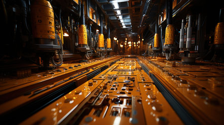 Metal industry machinery working inside factory transportation equipment manufacturing generated by artificial intelligence
