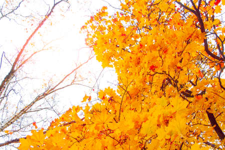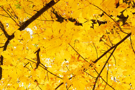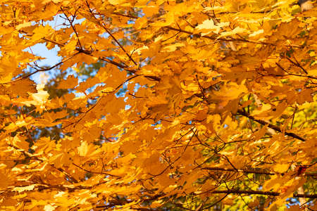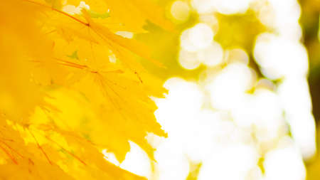 Autumn in the park: golden maple tree leaves in the sunlight