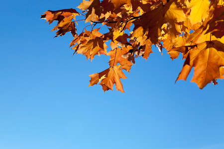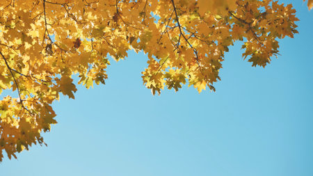 yellow leafs of maple tree on blue sky background