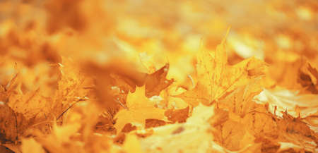 Autumn natural seasonal vintage hipster background with golden maple leaves selective focus