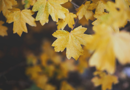 Yellow maple tree leaves, beautiful autumn concept
