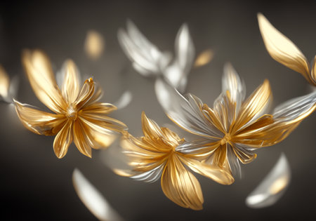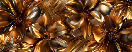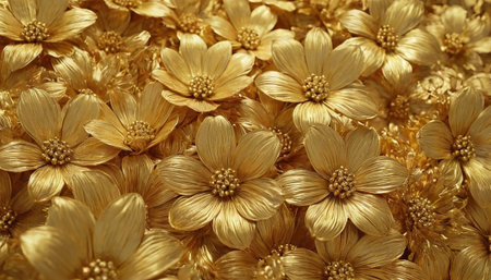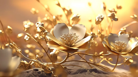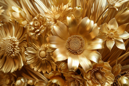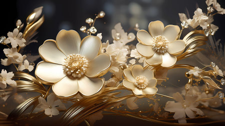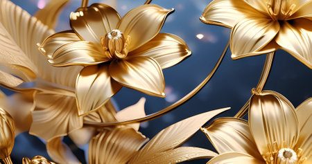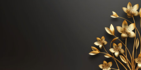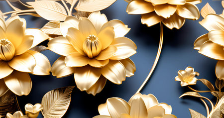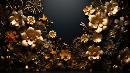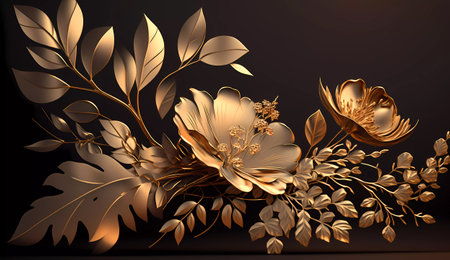 A stunning composition of gold flowers and decorative elements resting on a dark background, symbolizing elegance and luxury in artistic design.