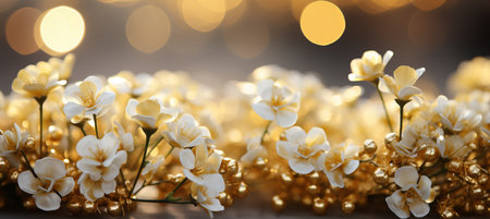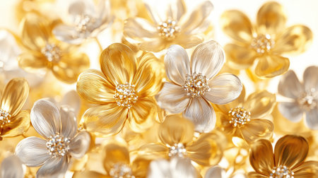Exquisite arrangement of golden and white flowers featuring delicate petals and sparkling centers, perfect for enhancing elegance in any design.