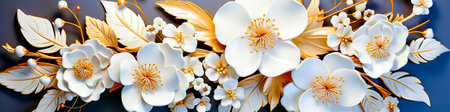 Delicate white and gold flowers bloom against a backdrop of soothing blue, creating a captivating visual feast for the eyes. Nature Inspired Beauty