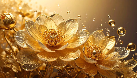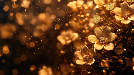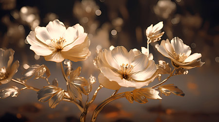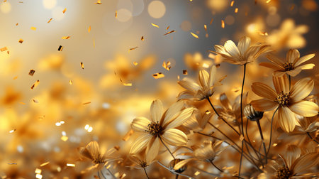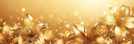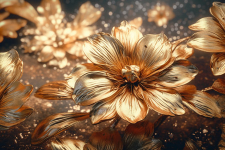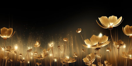 This captivating image showcases elegant golden flowers contrasted against a dark background, adorned with sparkling effects that evoke a sense of beauty and inspiration.