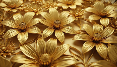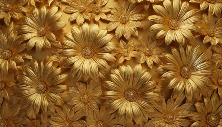 An exquisite artwork of a golden floral background, featuring intricate flowers and foliage, their gold tones adding depth and elegance.
