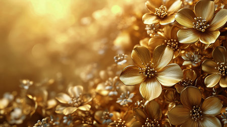 Opulent golden floral extravaganza: a luxurious and elegant botanical design with shimmering metallic texture and richness. Inspired by nature. Perfect for festive decoration and glamourous wallpaper