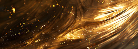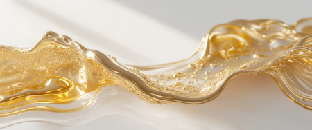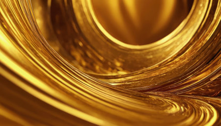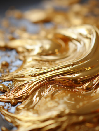 Experience the mesmerizing allure of this abstract close-up featuring shimmering gold liquid in dynamic motion. The image showcases artistic texture and light highlights, creating a glossy and elegant effect. Perfect for background design, this premium visual offers a modern and decorative touch. The fluid forms, with swirling and wavy patterns, and a touch of bokeh, provide a sense of luxury and movement. Ideal for wallpaper, digital art, and high-end projects requiring a radiant and opulent aesthetic.