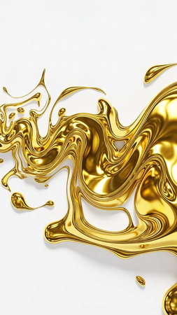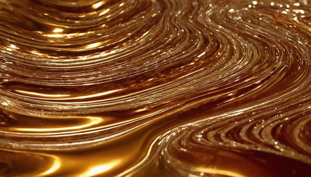 A captivating abstract background featuring shimmering gold liquid. The smooth, fluid texture creates a dynamic visual effect, perfect for design projects.
