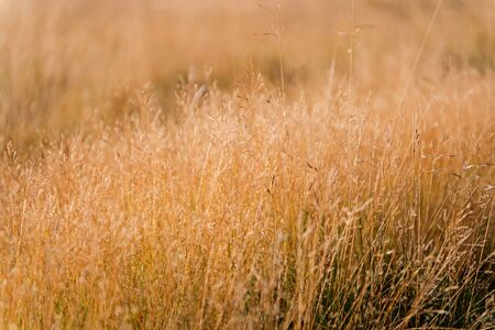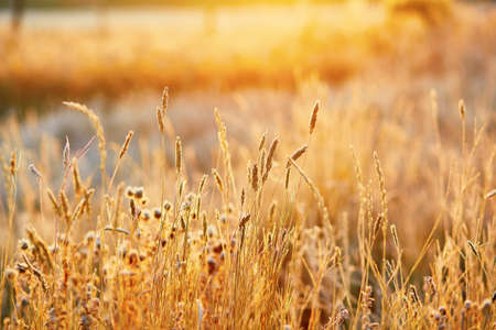 Golden grass on a meadow at sunset. Shallow depth of field.