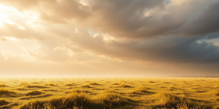 Golden sunrise over a vast field of grass.