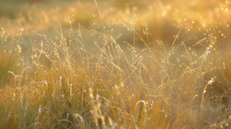 A serene image capturing tall grass illuminated by warm sunlight during the golden hour, showcasing the natural beauty and tranquility of the outdoors.