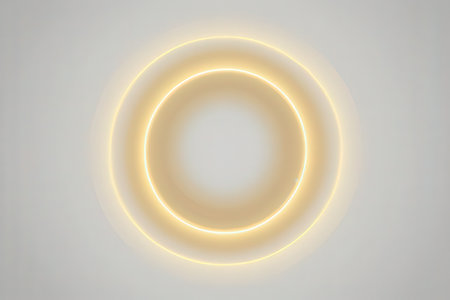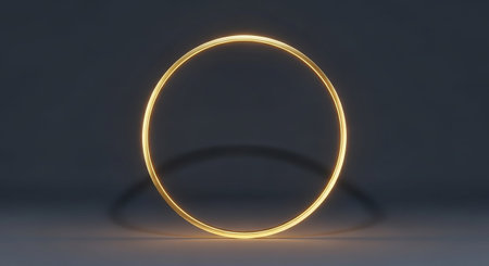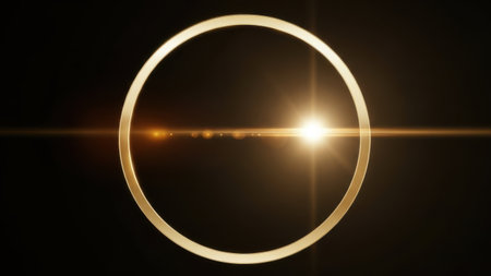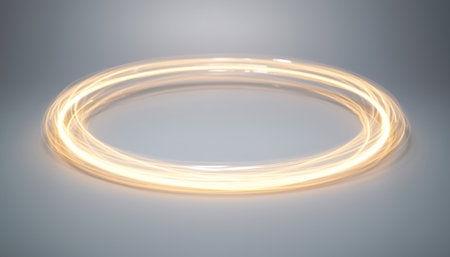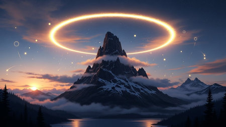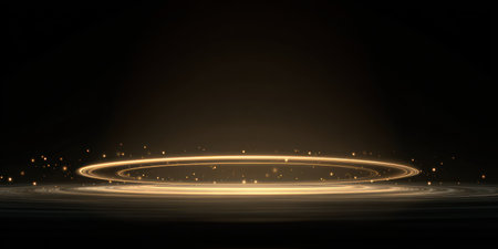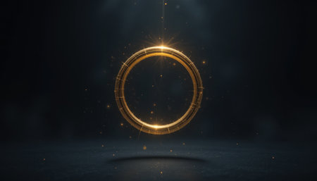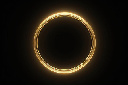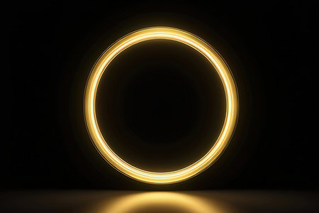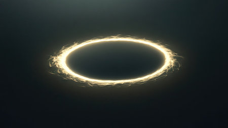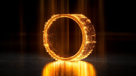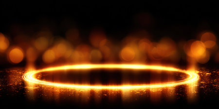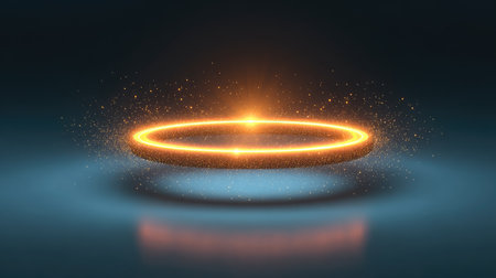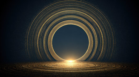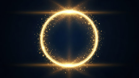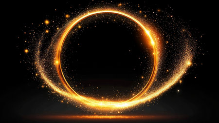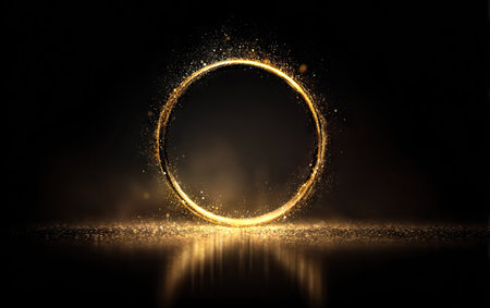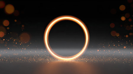 A luminous circle emits an enchanting glow, tinged with iridescent hues, while delicate sparkles cascade around it, creating a mystical and captivating ambiance in darkness.