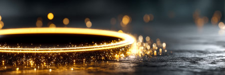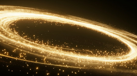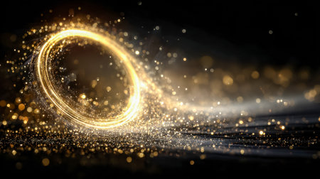 Abstract Swirling Golden Particles Light Trails On Black Background Elegant Energy Flow Digital Concept