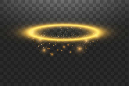 Gold halo angel ring. Isolated on black transparent background, vector illustration.