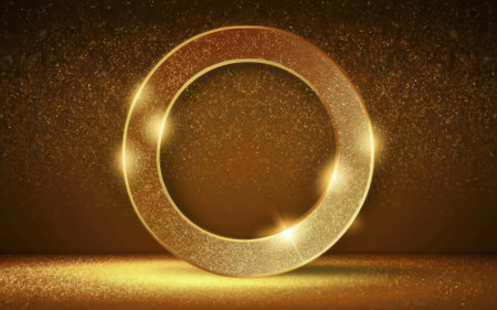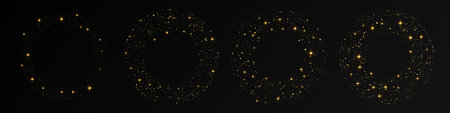 Set of sparking golden circles. Template decoration elements, gold frames rings with shining glitter