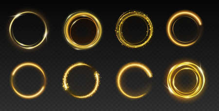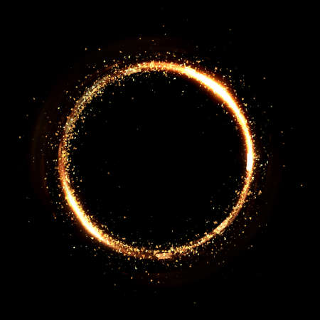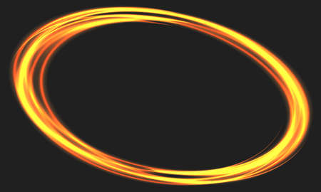 yellow Fire circle light effect. Gold halo angel rings. Round fiery frame.