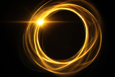 Radiant yellow-orange energy swirl forming a twisted glowing ring with intense heat and motion effects on dark background.