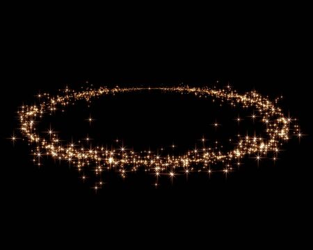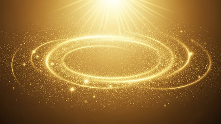 Glowing gold swirl with star shapes, lens flare, and sparkling