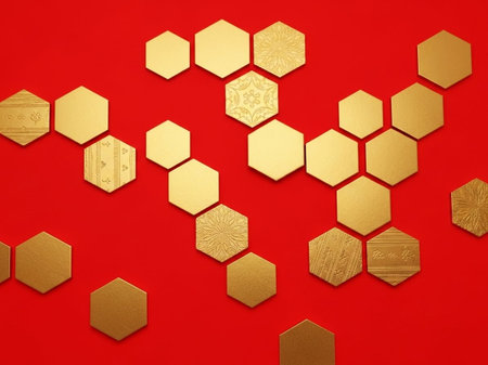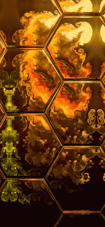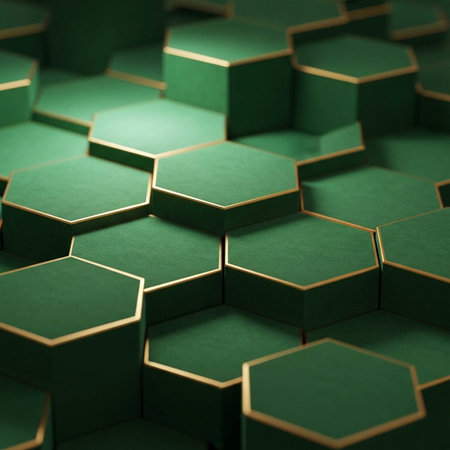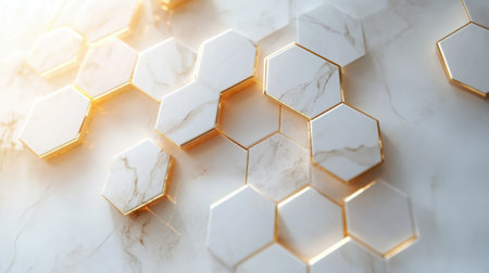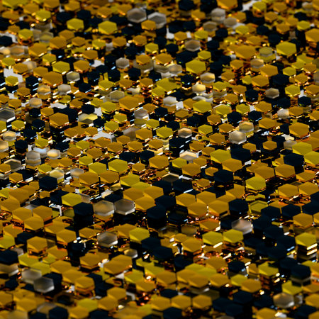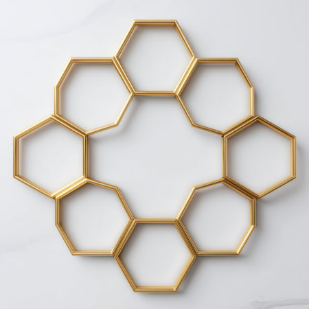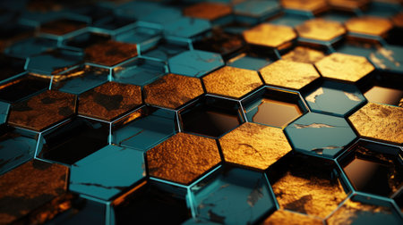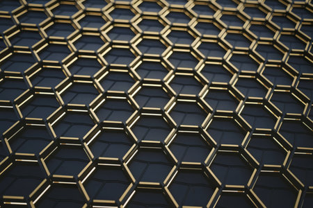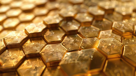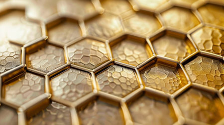 Close-up view of a gold hexagonal pattern that represents innovation and modern design aesthetics.